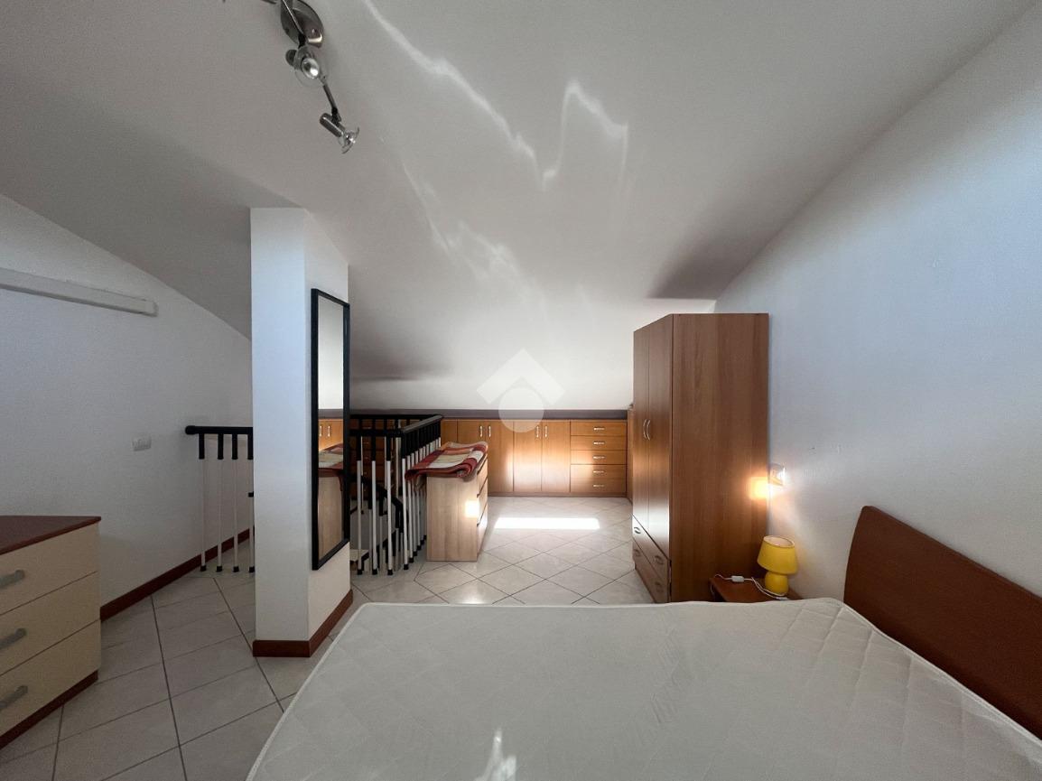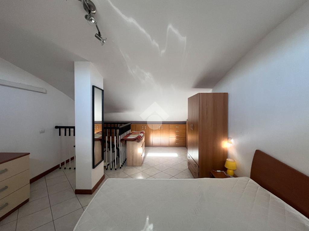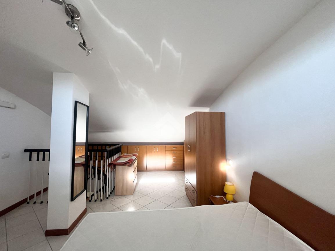 Una scala a chiocciola conduce alla zona notte soppalcata dove troviamo la camera matrimoniale con comoda armadiatura, uno spazio riservato e ben sfruttato.