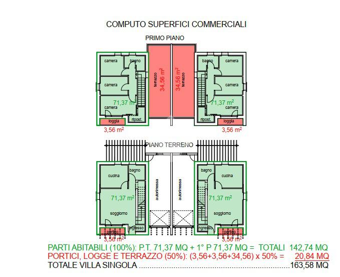 L’abitazione offre una superficie abitabile di circa 143 m², arricchita da spazi esterni che portano la superficie commerciale a circa 164 m².
